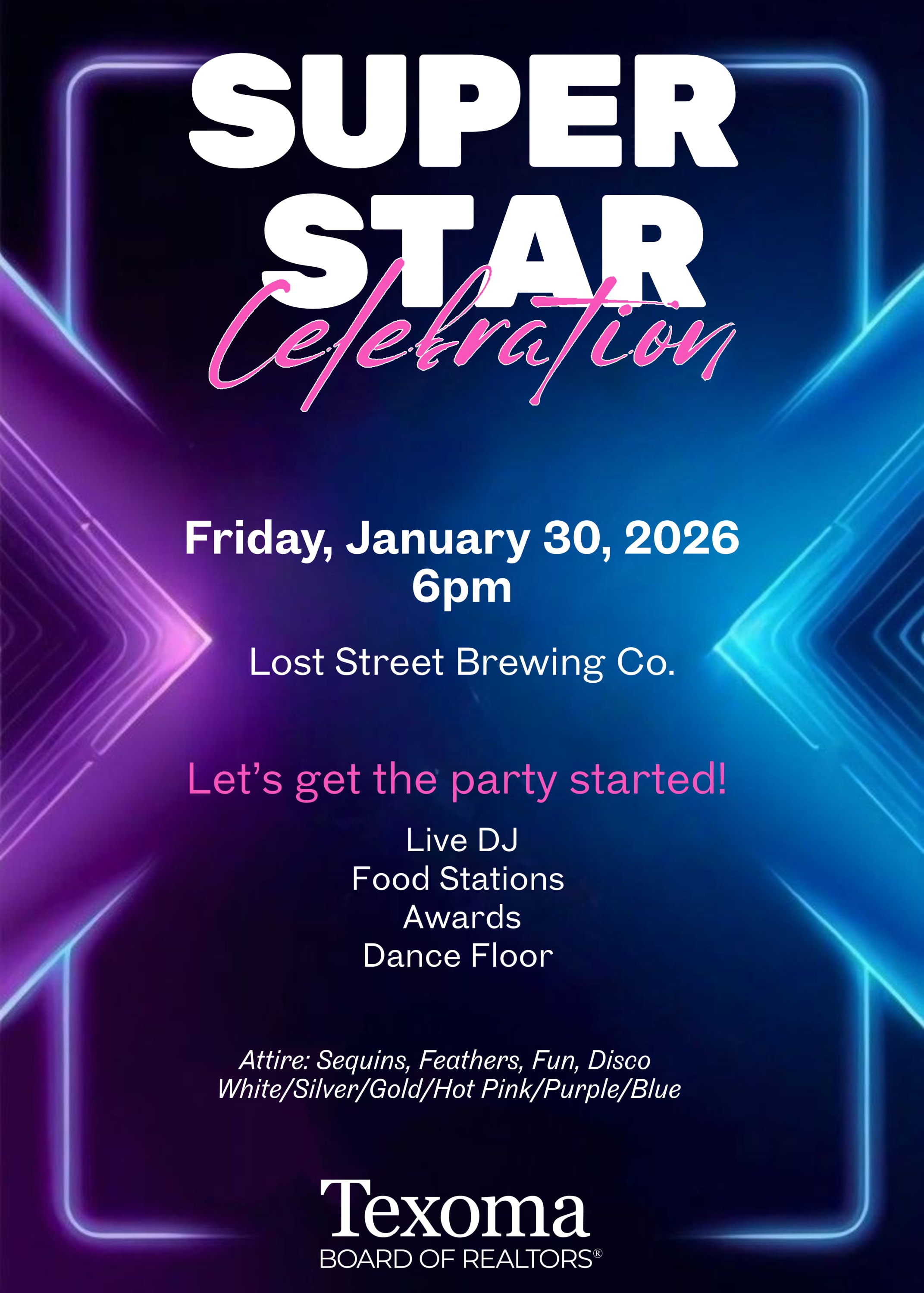 Get ready to shine, REALTORS® — our brightest night of the year is almost here! ✨Join us for the Texoma Board of REALTORS® 2025 SUPER STAR Celebration, an unforgettable evening honoring the standout achievements, service, and success of our incredible membership.