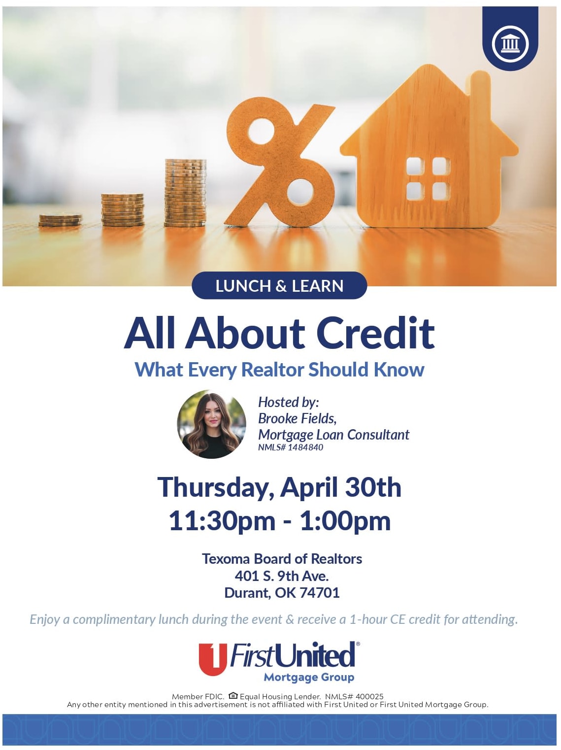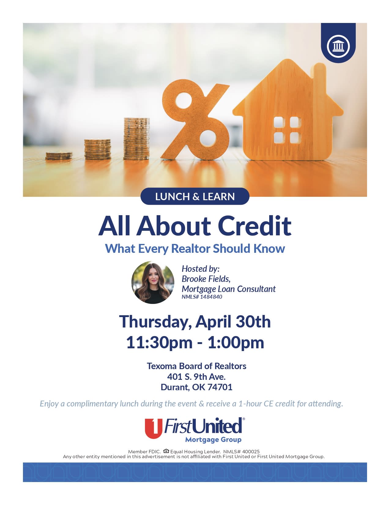 Join us for an informative Lunch & Learn hosted by Brooke Fields, Mortgage Loan Consultant (NMLS# 1484840), as we dive into “All About Credit: What Every REALTOR® Should Know.”